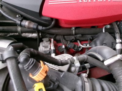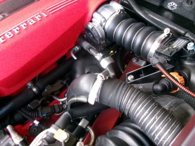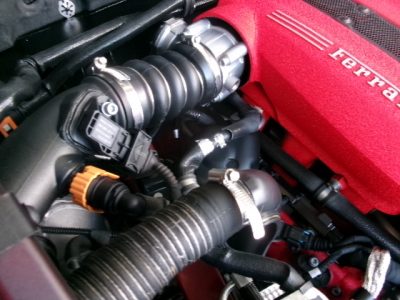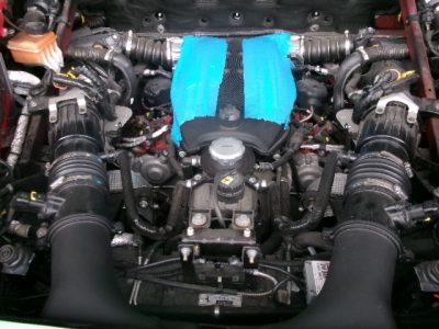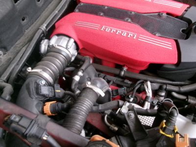 フェラーリ・エンジンルームドライアイスブラスト洗浄