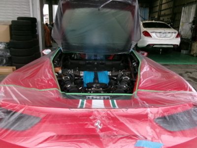 フェラーリ488のエンジンルーム・ドライアイスブラスト洗浄作業のご依頼です。
